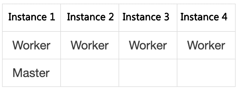 Giraph runs jobs based on MapReduce. Deploy each instance as the following figure shows (see Appendix 5.2.1 for Hadoop configuration parameters).