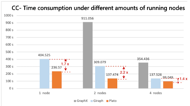 Figure 3. Connected Component benchmarking results of time consumption with different numbers of running nodes