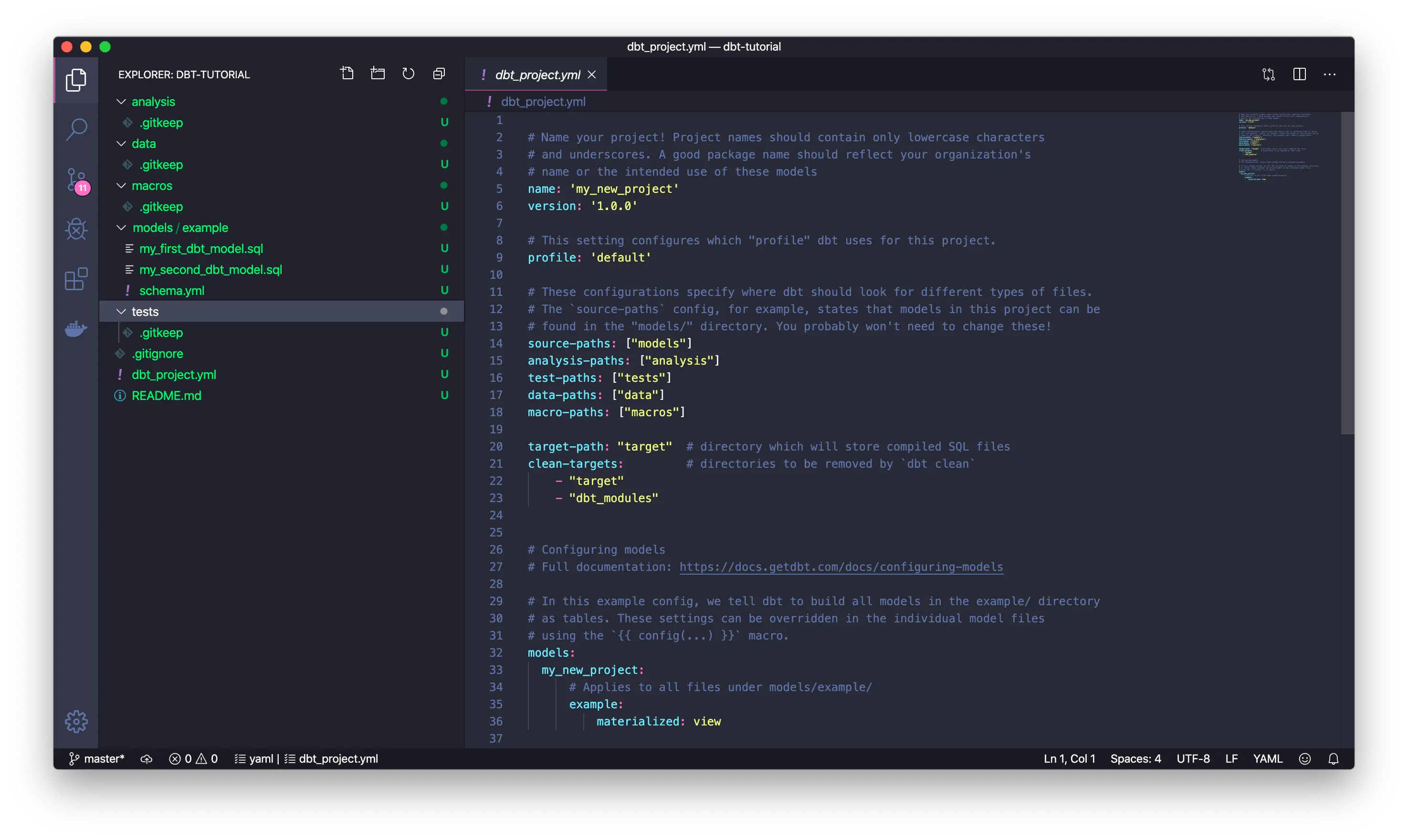 In short, dbt is a command line tool written in python, and we can create a project folder, which contains a YAML formatted configuration file, to specify where the source information for the data transformation is and where the target is (where the processed data is stored, maybe Postgres, Big Query, Spark, etc.). In the data source, we use the YAML file along with the .SQL file to describe the information about "what data to fetch from, how to do the transformation, and what to output".