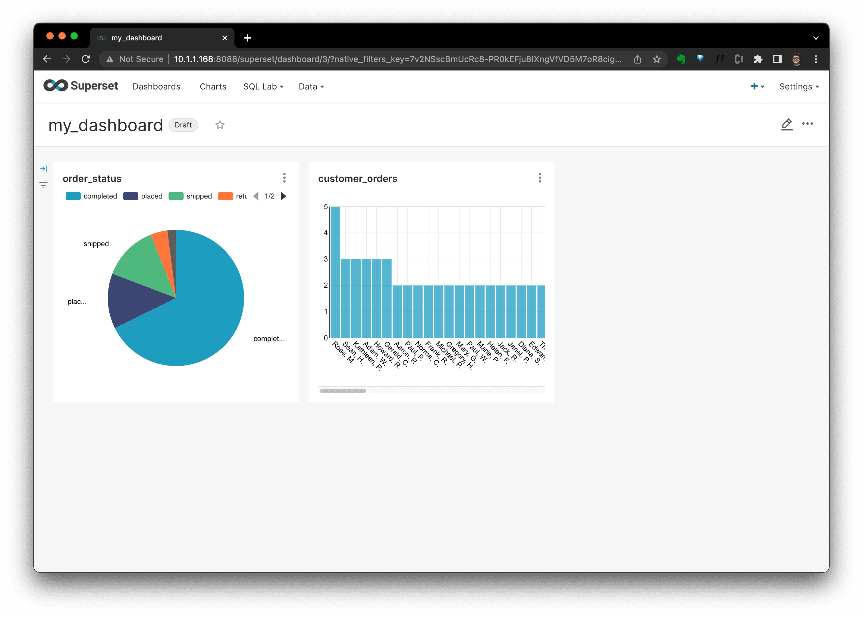 With Apache Superset, dashboards, and charts based on those data sources could be created and managed smoothly and beautifully.