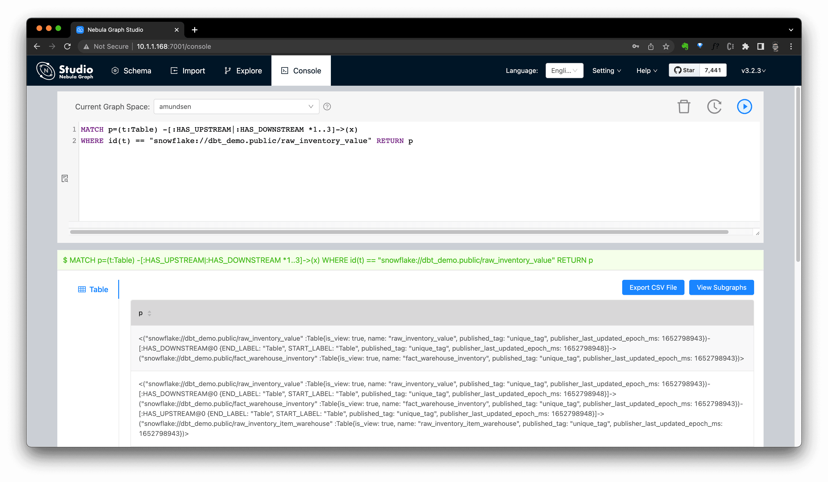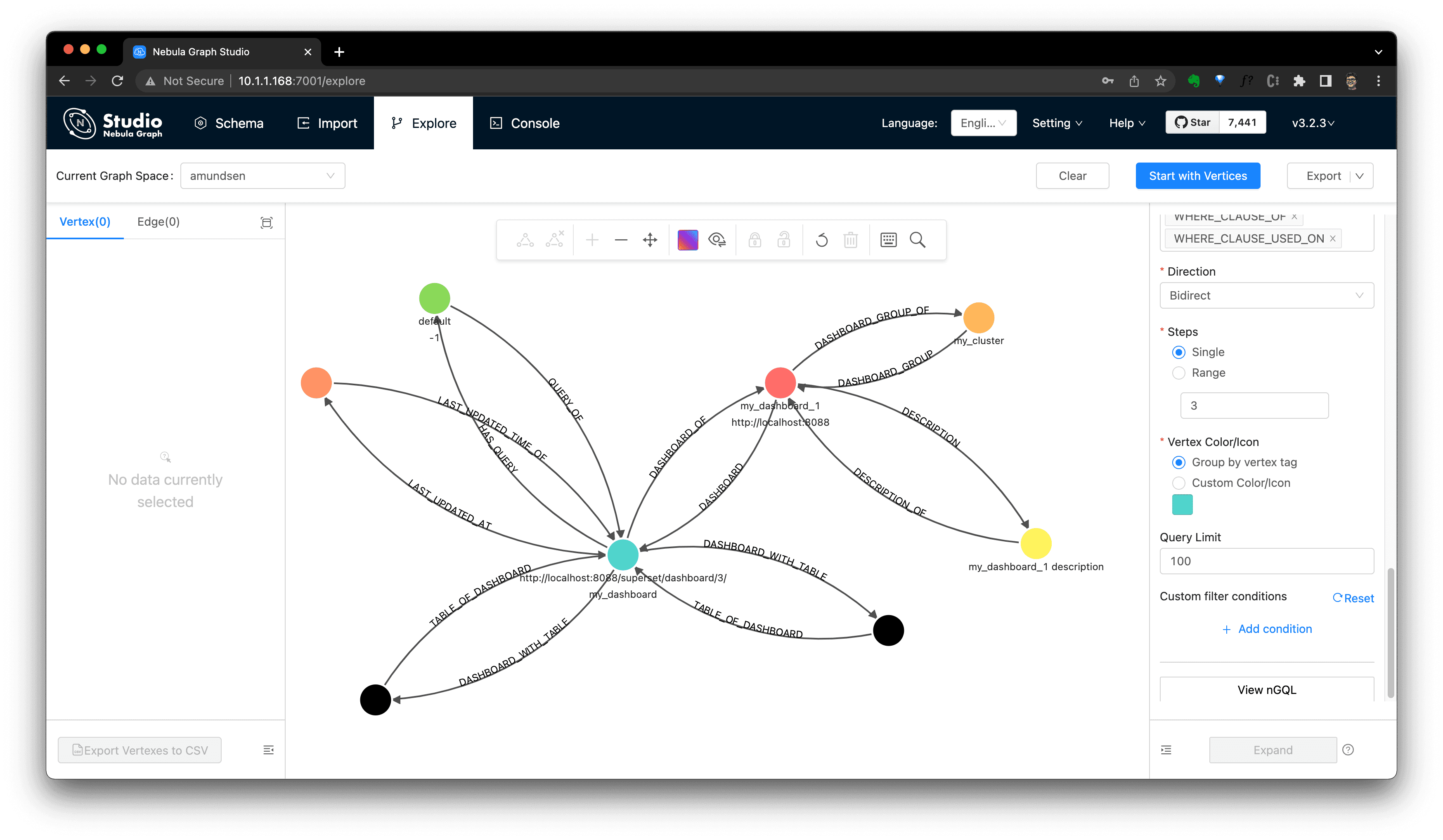 Or, alternatively, explore the imported data in Nebula Studio: