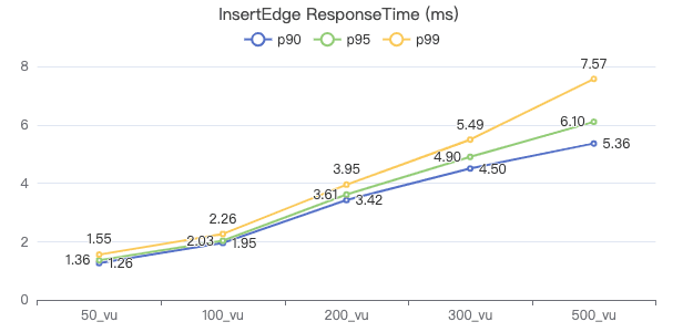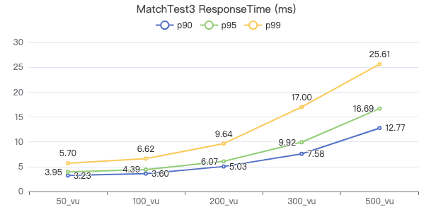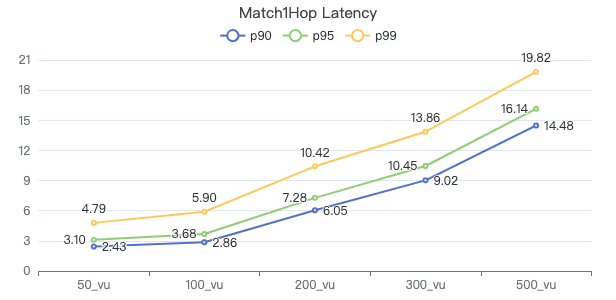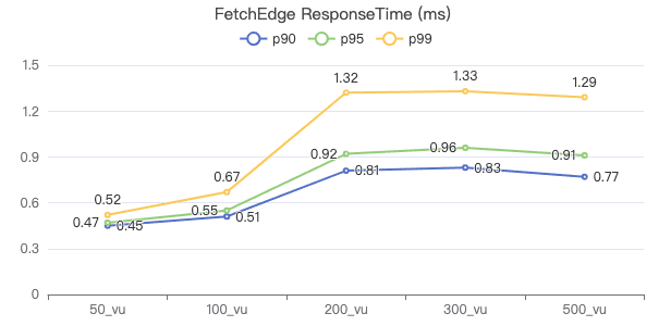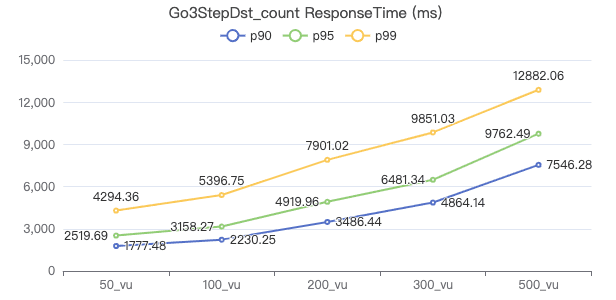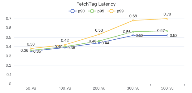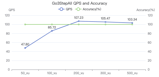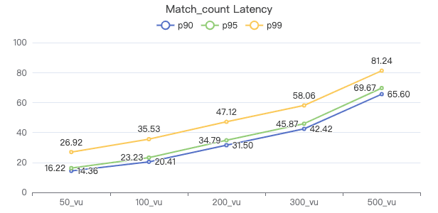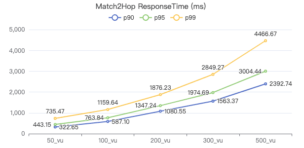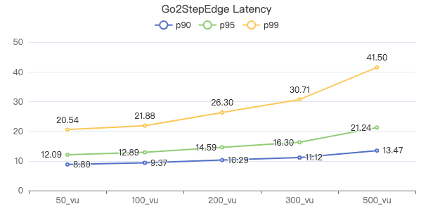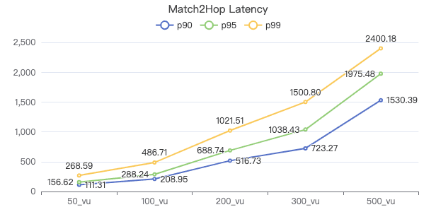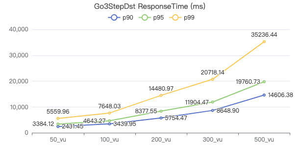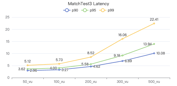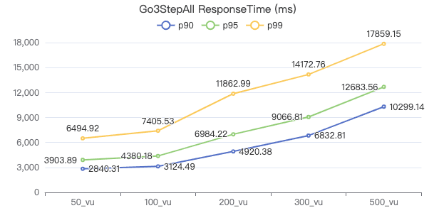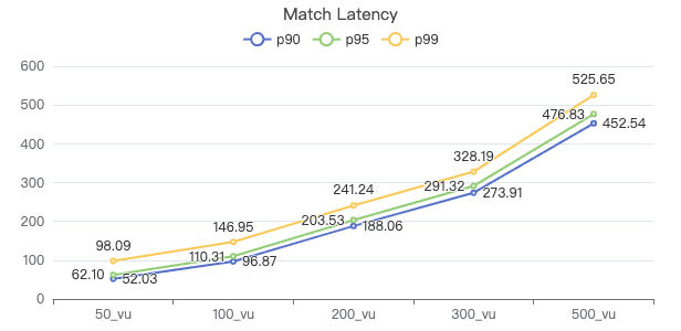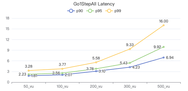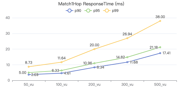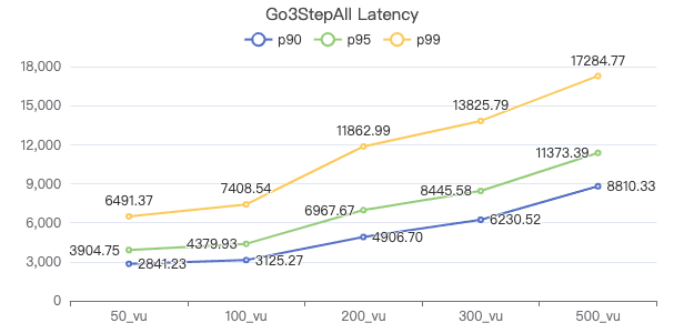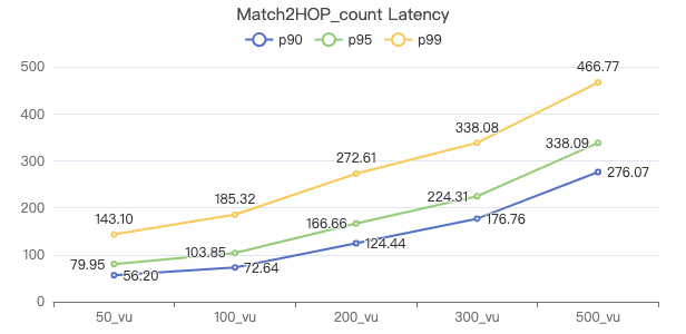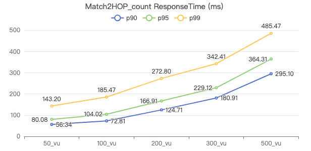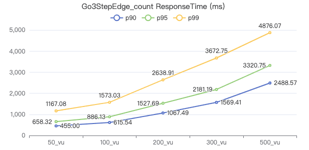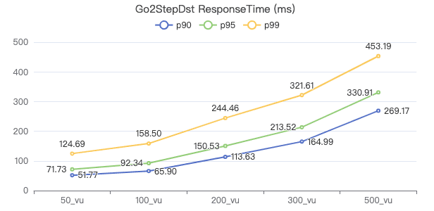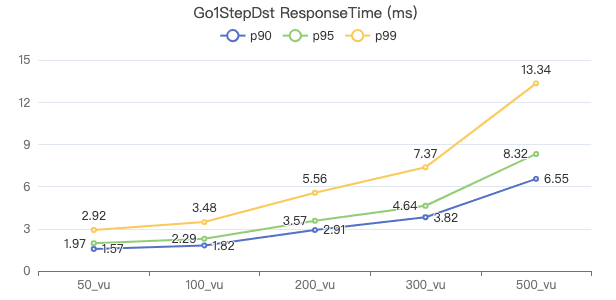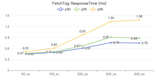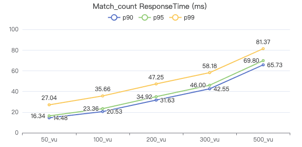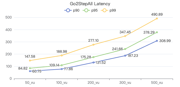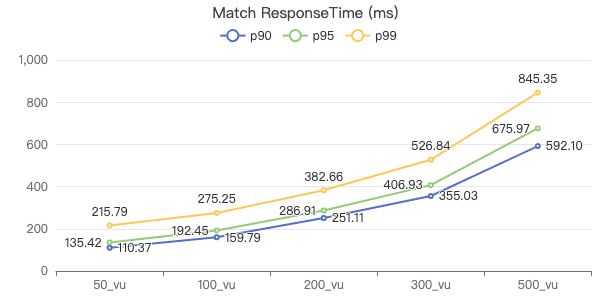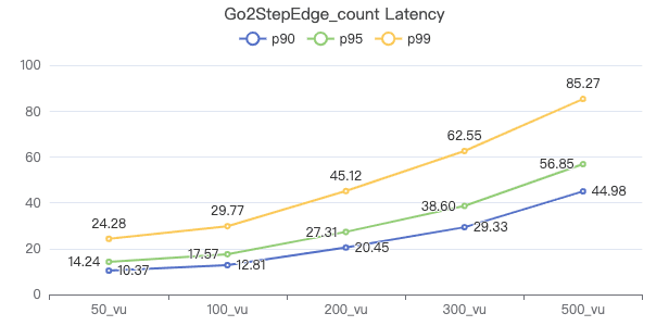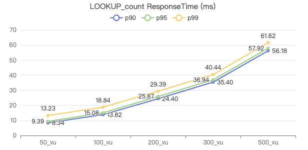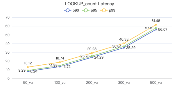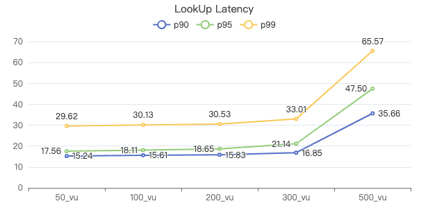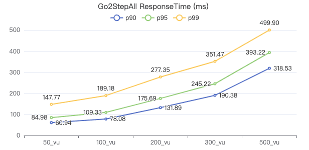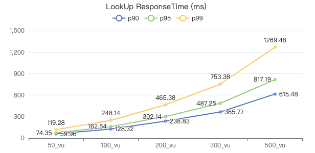50_vu,100_vu, etc., seen on the x-axis of the graphs refer to the virtual user, a concept used by k6, which represents the concurrency in performance testing.50_vudenotes 50 concurrent users,100_vudenotes 100 concurrent users, and so forth.The performance baseline uses the officially released version v3.4.0.
